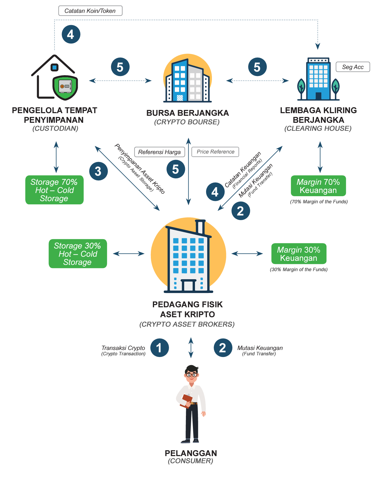 To provide a further understanding of the above institutions, below is a visualisation of each of their roles in the Indonesian crypto ecosystem.